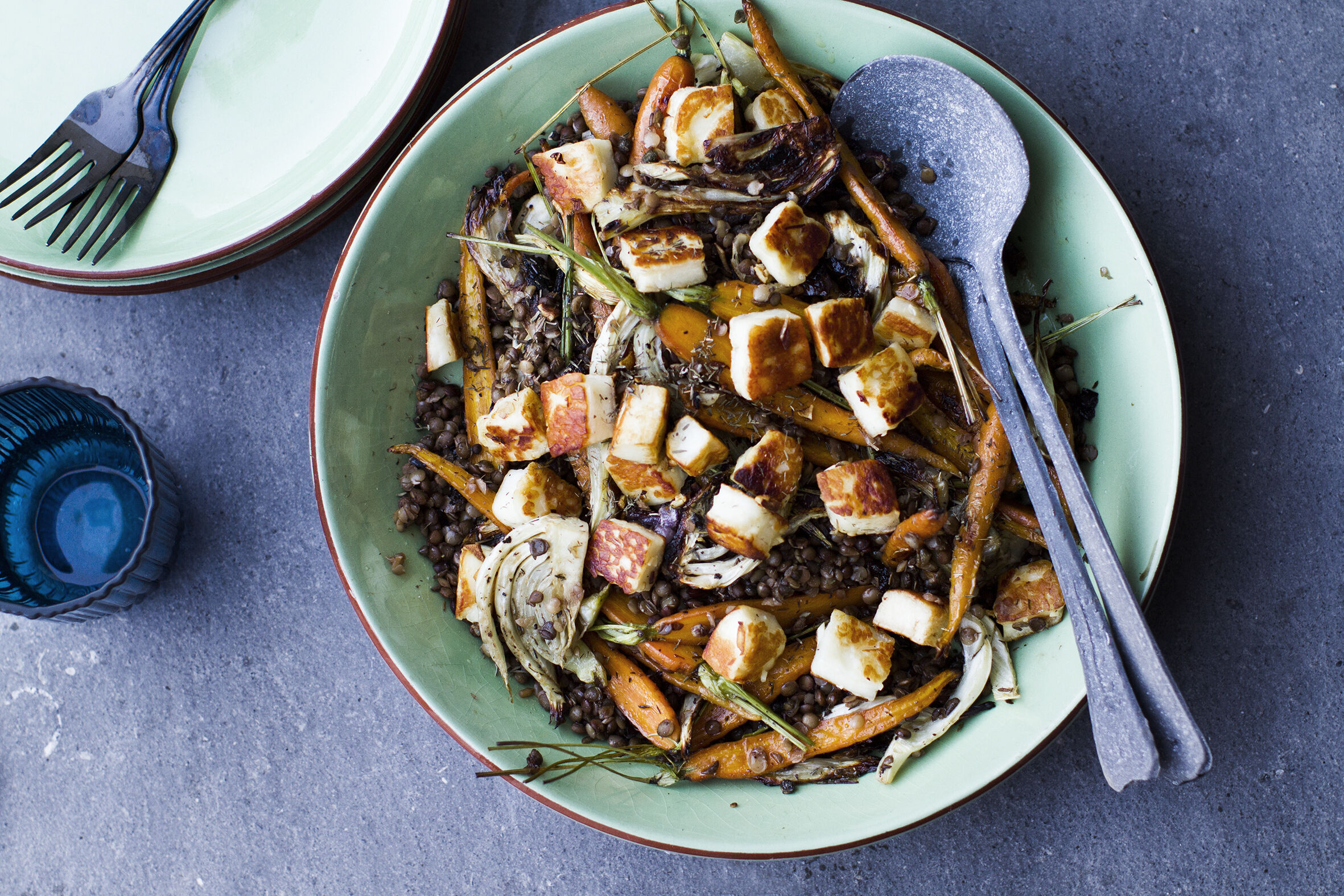 ROASTED VEGETABLE, DU PUY LENTIL & HALLOUMI SALAD